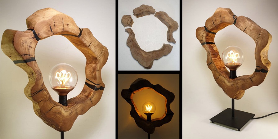 The evolution of 600-year-old olive wood in table lamp.